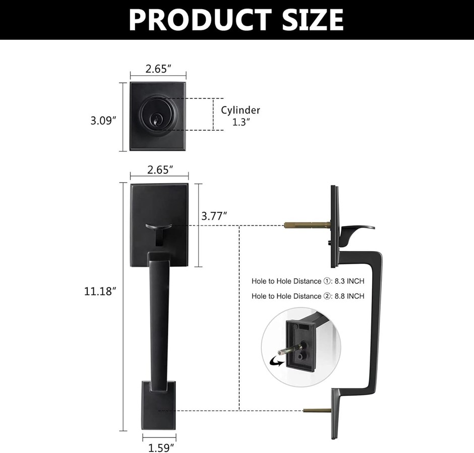NEUTYPE Front Door Handle Set Entrance Door Lock Set Matte Black Heavy Duty Entry Handle Set with Lock, with Single Cylinder Deadbolt and Lever Handle, Compatible with Right & Left Handed Doors. (Code: B09RF3LQW7) (332186-218)