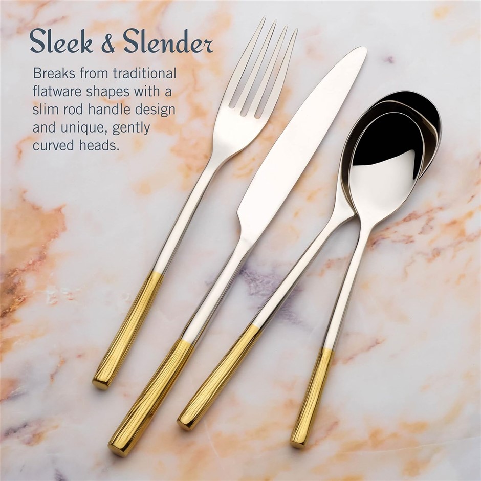MIKASA Duval Gold Lines 18.0 Forged Stainless Steel 16 Piece Cutlery Set, Service for 4. (Code: B0BF65HJSQ-NE) (334210-218)