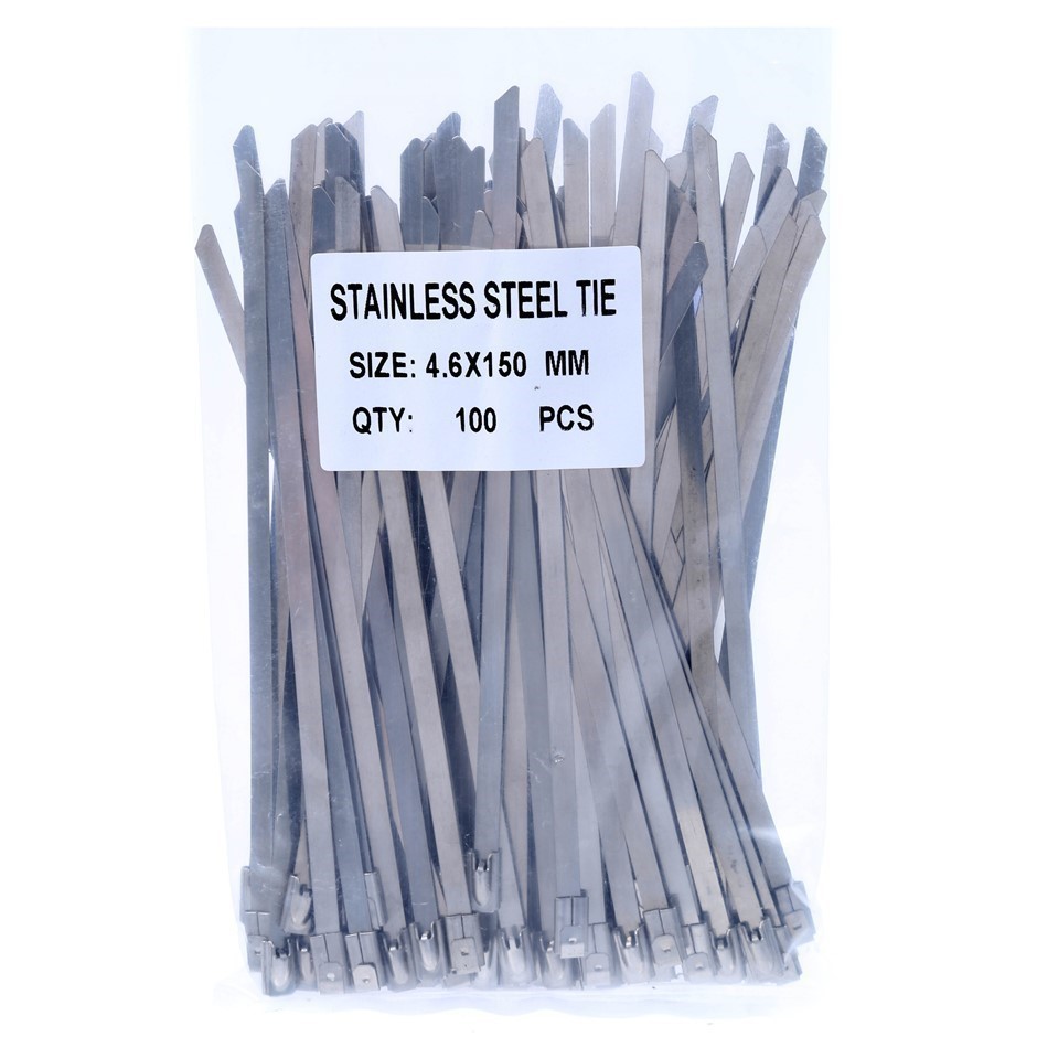 2 Packs of 100 x Stainless Steel Cable Ties, Size 4.6mm x 150mm. (Code: H4615SS-K2) (334137-221)
