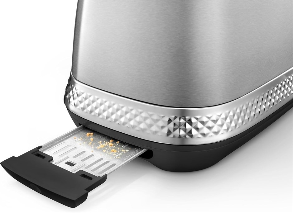 DE`LONGHI Diadema Toaster CTV3003.M, 2 Long-Slot Toaster with Reheat and Defrost Functions, Stainless Steel, 900W, Platinum. NB: Minor Use. (Code: B0F18VJLDB-MU) (334560-222)