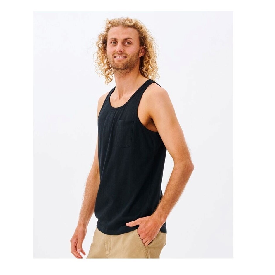 RIP CURL Men`s Plain Tank Top, Size M, Black. RRP: $35.99. Buyers Note - Discount Freight Rates Apply to All Regional Areas(Code: 0BUMTE-BLK-M) (334239-222)