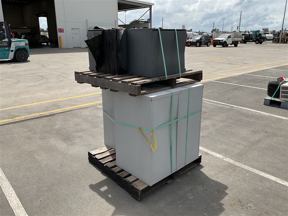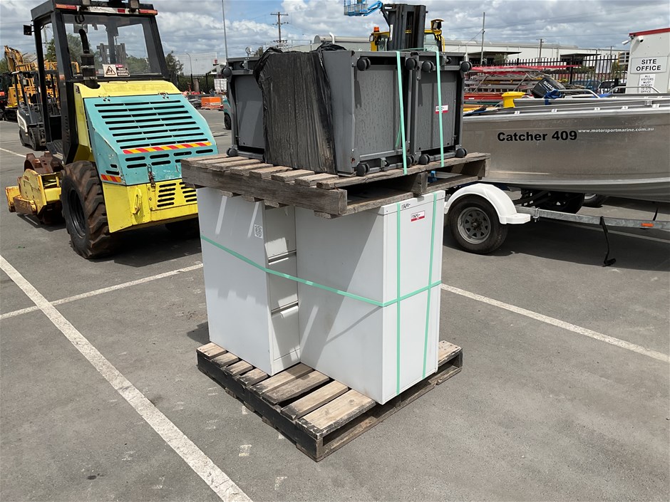 • -. 3 x large 3 drawer and 3 x smaller underdesk cabinets.