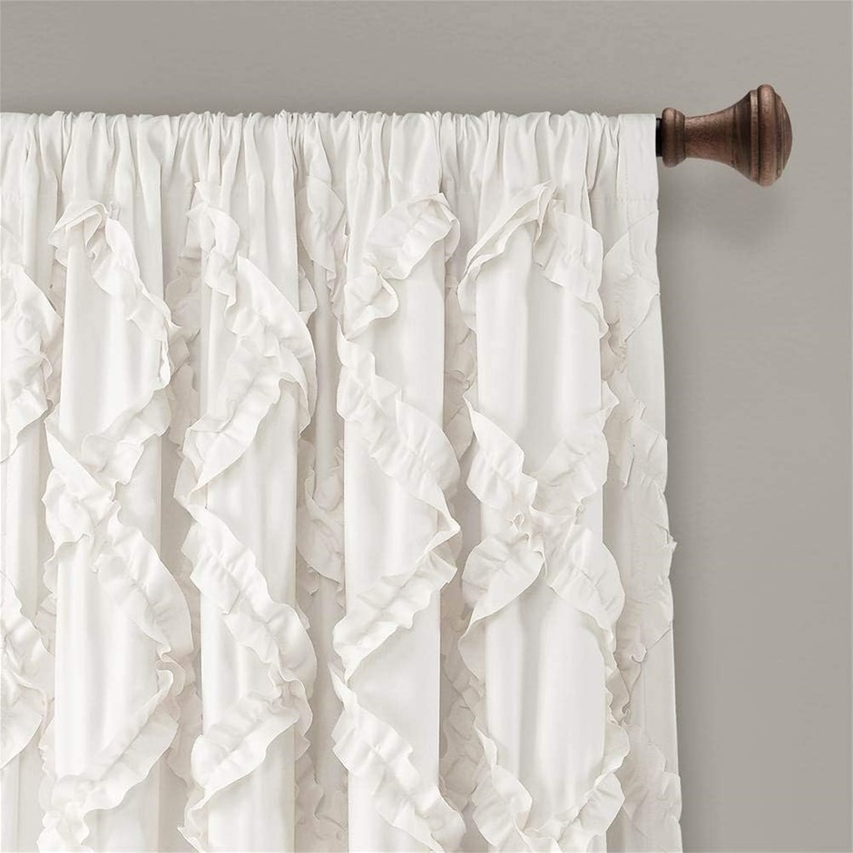 LUSH DECOR Ruffle Diamond Curtains Textured Window Panel Set (Pair), 95” x 54”, White. RRP: $150. (Code: B07V2JYBRC-NE) (332115-244)
