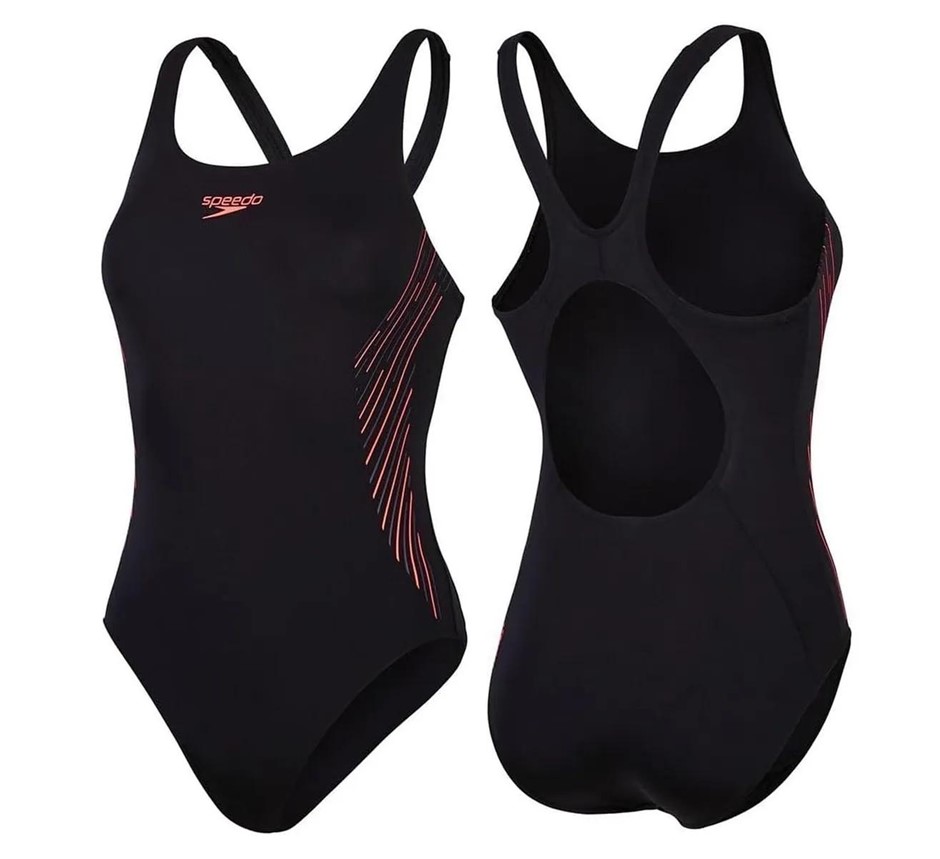 SPEEDO Women`s Placement Muscleback Swim One-Piece, Size AU14 (GB 16/38), Black/PlumDandy/Siren, 8-00305817542. Buyers Note - Discount Freight Rates Apply to All Regional Areas(Code: B0D7MW2D22) (334073-247)
