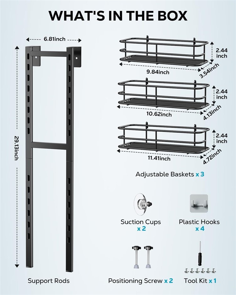 NIEIFI Over The Door Hanging Shower Caddy Drill Free Extra Large, Metal, Black. NB: Slightly Damaged Packaging. (Code: B093GSJSYH-SDB) (330886-249)