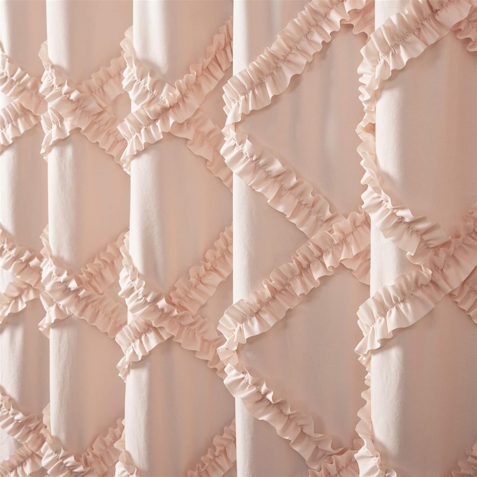 2 X LUSH DECOR 72” Blush Ruffle Diamond Shower Curtain. RRP: $85. (Code: B07KX26KRF-K2-NE) (332115-249)