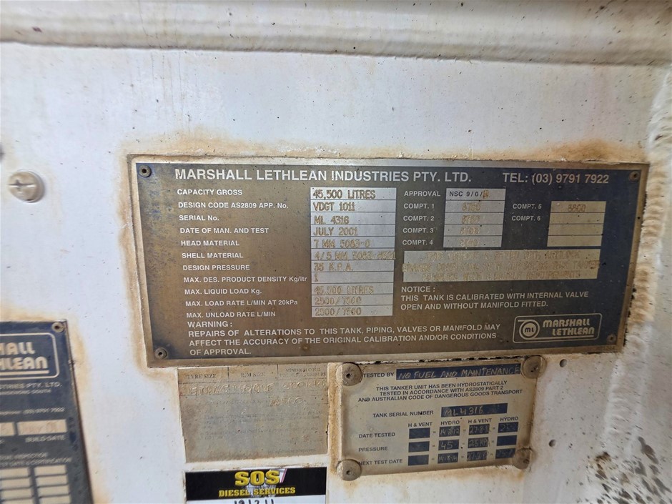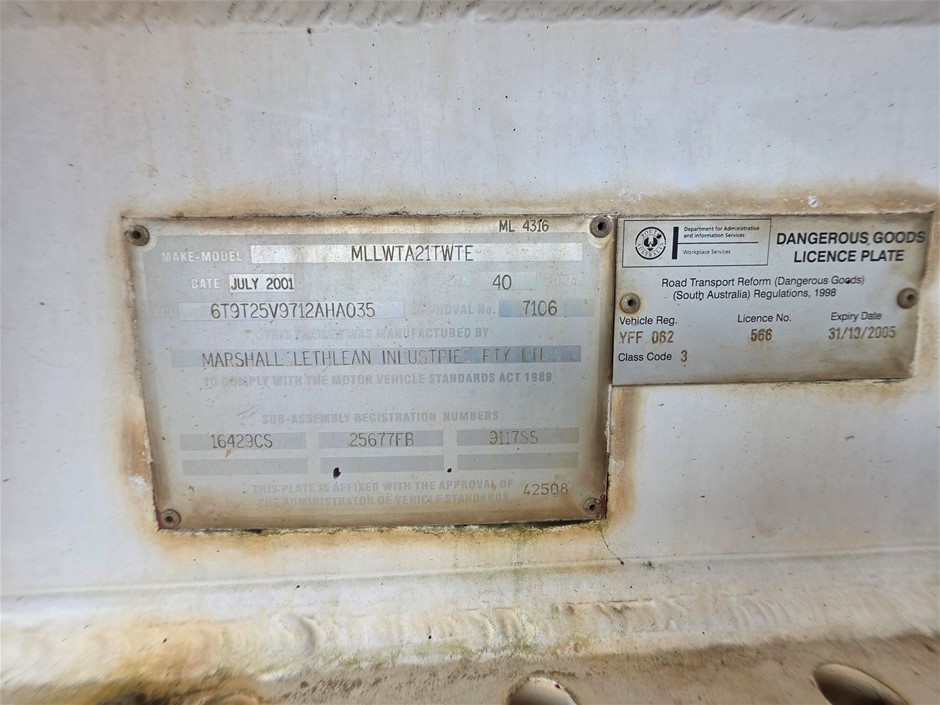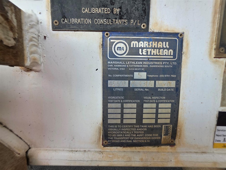 2001 Marshall Lethlean Tanker Trailer Triaxle Fuel Tanker