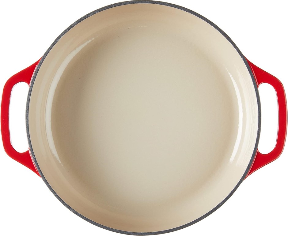LODGE 3.6 Quart Enameled Cast Iron Oval Casserole With Lid– Dual Handles – Oven Safe up to 500° F or on Stovetop - Use to Marinate, Cook, Bake, Refrigerate and Serve – Island Spice Red. (Code: B000N5017E-NE) (333524-253)