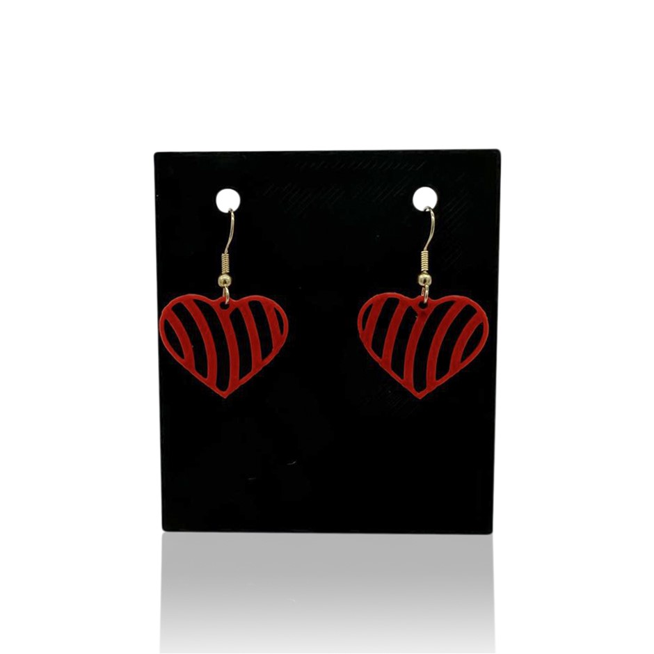 Stunning Love Heart Patterned Red Dangle Earrings in Gold