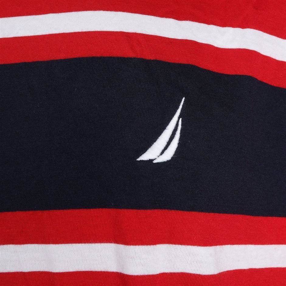 NAUTICA Men`s Tee, Size L, Cotton, Red/White/Navy. Buyers Note - Discount Freight Rates Apply to All Regional Areas(Code: CC87363) (331865-256)