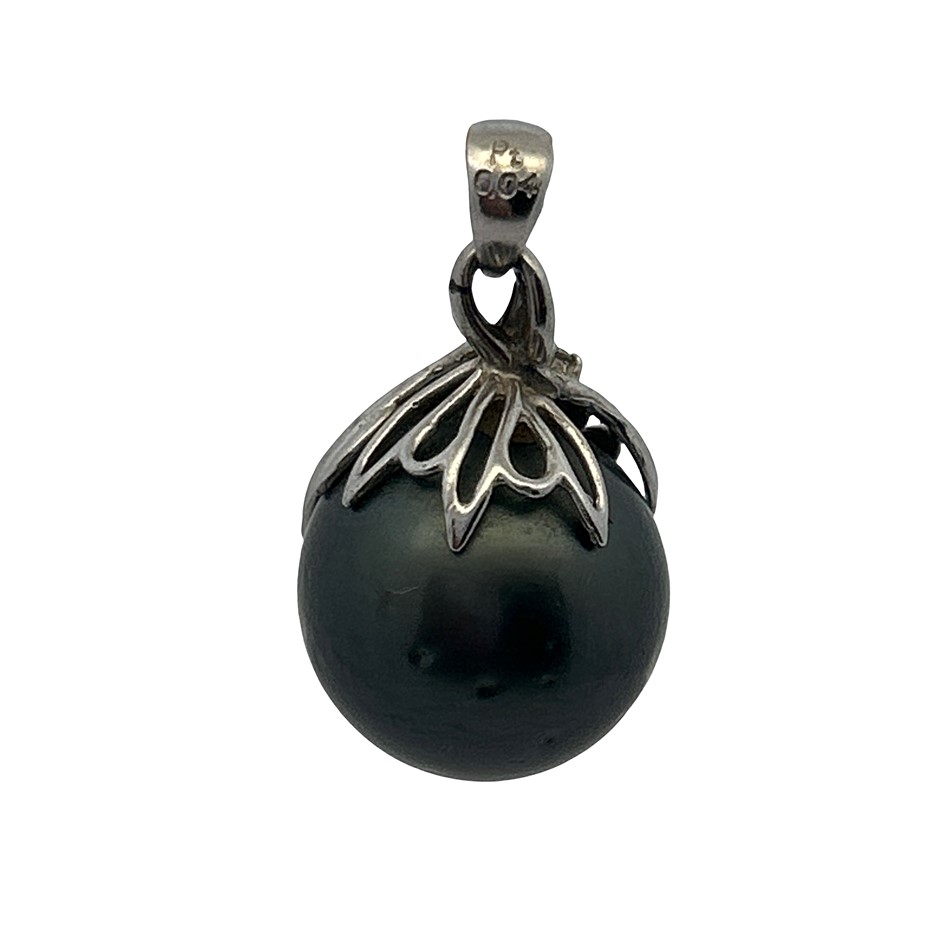 Platinum Black Pearl & 0 04ct Diamond Pendant