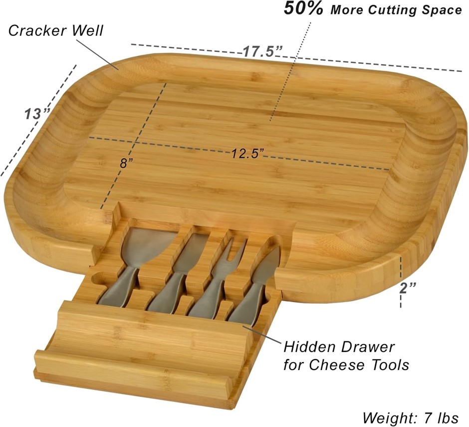 CARRARA HOME Malvern Bamboo Cheese Board w/ 4 Pieces Stainless Steel Servin