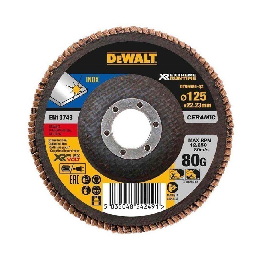 5 x DeWALT Ceramic Flap Discs 125 x 80 Grit. (Code: DT99585-QZ-K5) (331597-280)