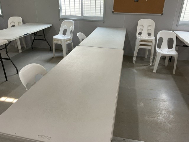 • Only Items In This List To Be Included. Items Will Be Broken Down Where Required And Stored In A 40ft Container. Items Include Approx 30 Metal Frame Desks, 30 Chairs, 60 Assorted Monitors, 30 Think Pad Docks, 2 Bookcases, Mobile Whiteboard, 75” Television, Weatherproof Outside TV Protection Case, 8 Folding Leg Tables, 25 Stackable Chairs, 2 x Hisense Single Door Fridges, 4 Assorted Microwave Ovens, 2 Fisher and Paykel 2 Drawer Dishwashers