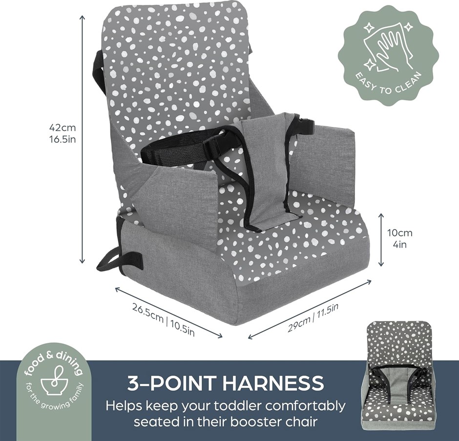DREAMBABY On-The-Go Kids Booster Seat with Handy Storage Compartments, Fits Most Dining Chairs. NB: Damaged packaging. (Code: B0FVNDVF5B-DP) (333403-283)