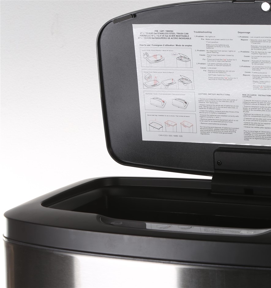 SENSIBLE ECO LIVING 47L Motion Sensor Bin, Deodorizer Holder. N.B: Has Been Used, Not Boxed, Batteries Not Included, Inner Bin Minor Damaged on 2 Corners & Sensors Tested & Working. (Code: 1900502-HB-NB-3) (334210-287)