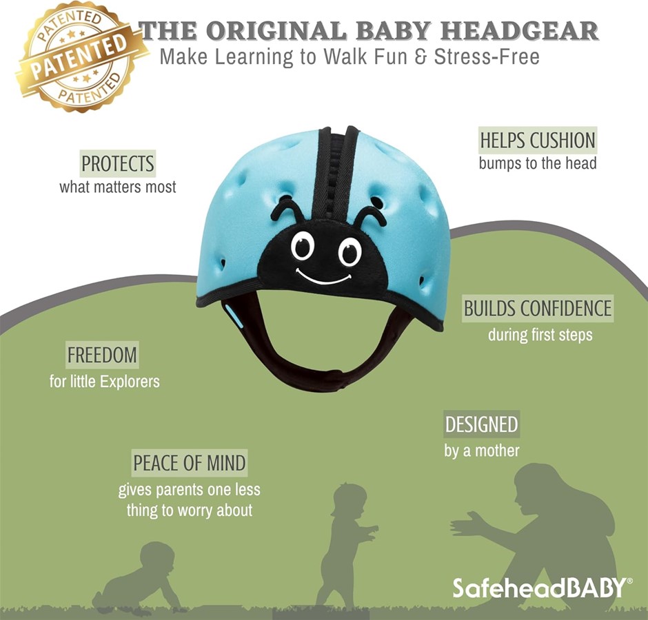 SAFEHEADBABY Soft Infant Head Protector for Crawling & Walking, 7-24 Months, 40-52cm, Ladybird Blue. (Code: B012WMB3YK-NE) (331952-293)