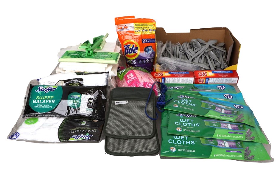 Assorted Household Products, inc. SWIFFER & U BY KOTEX, And More. NB: Not in original packaging, some have been used/have missing parts/damaged. (Code: CC117075) (333431-294)
