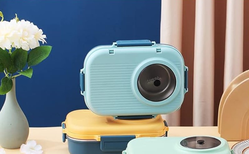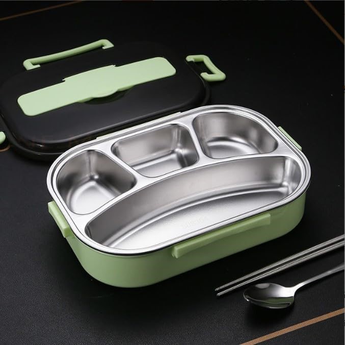 2 x Assorted 4 Grid Bento Lunch Box, Comprising: 1 x SIOTENZE Stainless Steel with Separate Soup Bowl, Blue & 1 x ZONADA All-in-One Stainless Steel, Green. (Code: B0BGBXD1L9-B1) (334210-294)