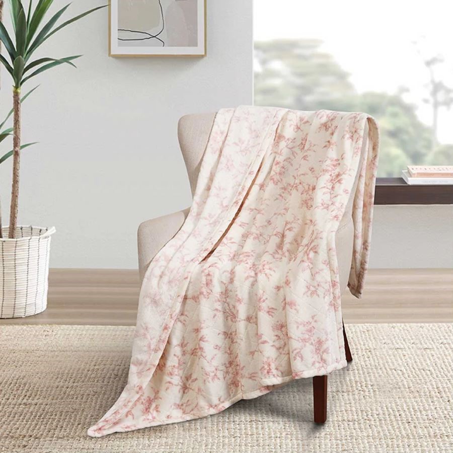 FRAICHE MAISON Velvet Plush Throw, 152cm x 177cm, Elodie Floral (Pink/White). (Code: 198082-EF) (332903-322)