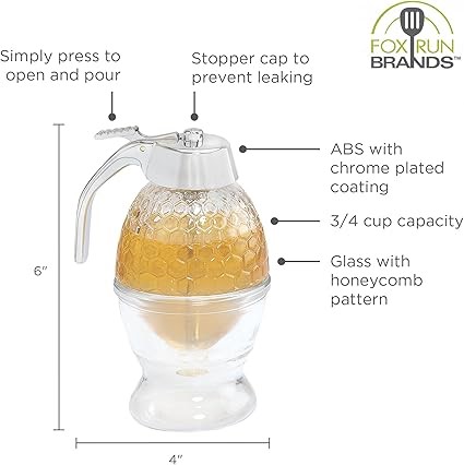 FOX RUN Glass Honey and Syrup Dispenser With Warming Base, Clear, 3.25 x 4 x 6 inches (Code: B003D2OUY4-NE) (332388-326)