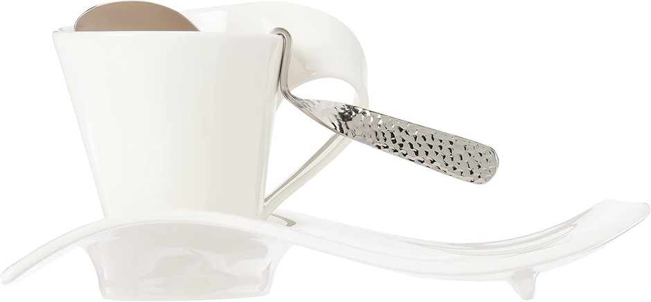 VILLEROY & BOCH New Wave Square Espresso Cup Set of 2, High-Quality Vitrified Porcelain, Made in Germany. Includes Cup, Spoon, Saucer, 2.75 Ounce Capacity, White. (Code: B004ZFY1BK-NE) (333524-332)