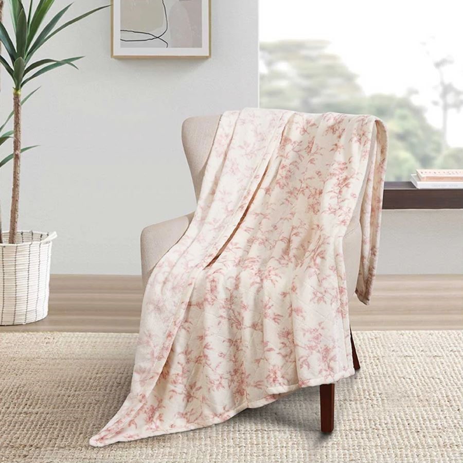 FRAICHE MAISON Velvet Plush Throw, 152cm x 177cm, Pink White Floral. N.B: Not in original packaging. (Code: CC115741-N) (332791-334)