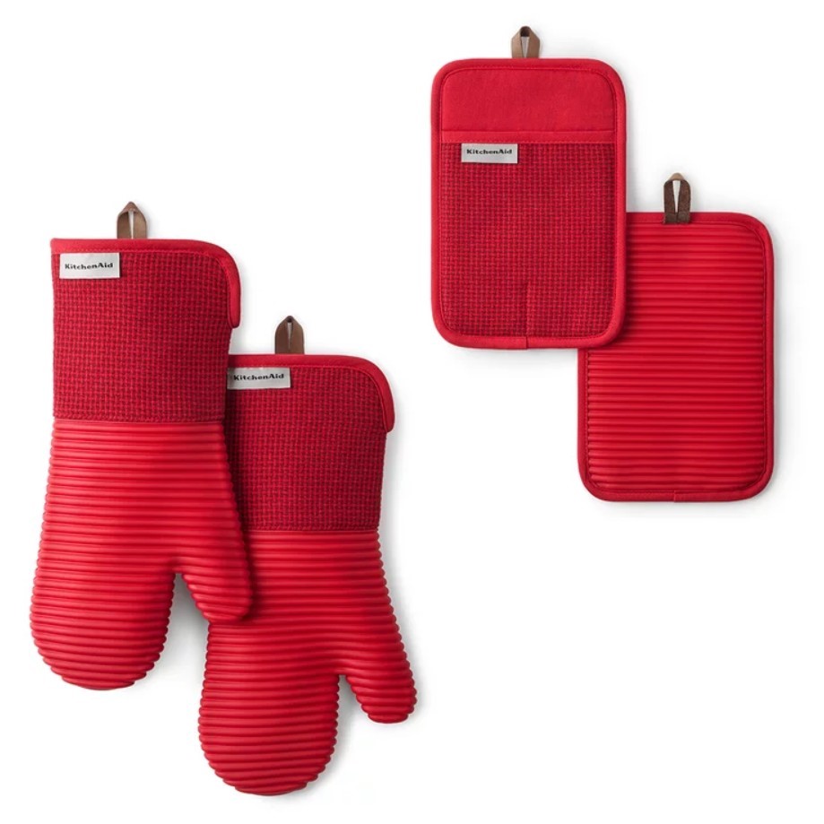 11 x Assorted KITCHENAID Oven Mitts & Pot Holders, Basketweave Pattern Blue, Green & Red. (Code: 1796304-GRRD-K11) (334696-335)