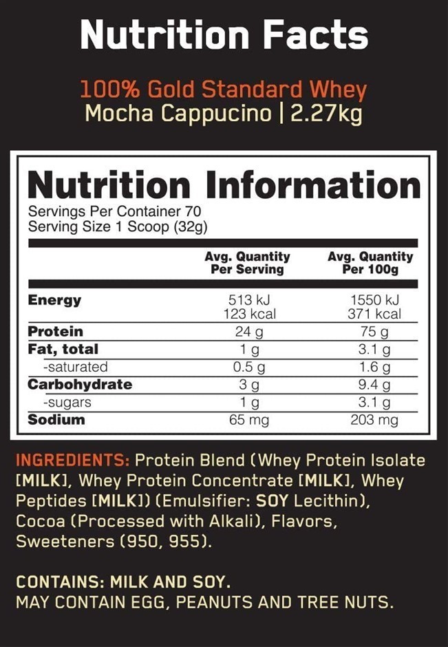 OPTIMUM NUTRITION Gold Standard 100% Whey Protein Powder, Mocha Cappuccino Flavour, 2.27kg. (Code: B001CYZ4GI) (333534-354)