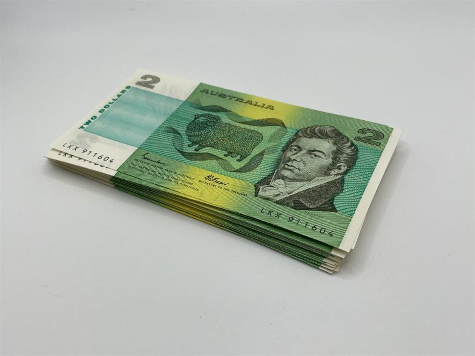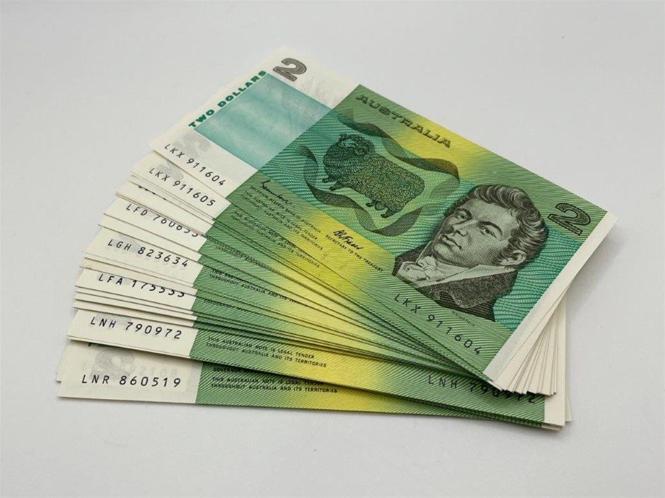 Approx. 73 x Australian $2 Johnston & Fraser paper banknotes c.1985