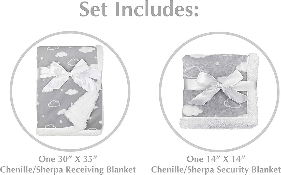 AMERICAN BABY COMPANY Heavenly Soft Chenille Sherpa Blanket Set, 3D Gray Cloud. (Code: B08NRWXYTG) (334210-359)