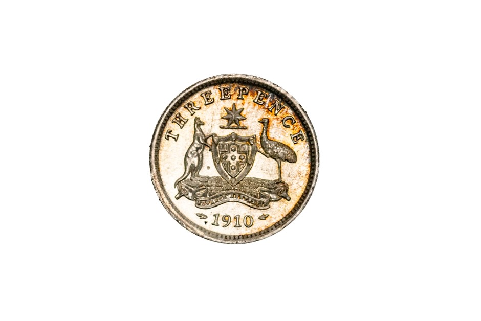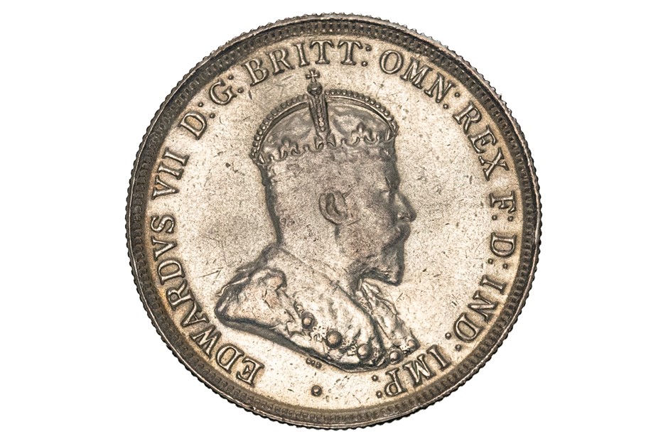 1 x 1910 Threepence w/ obverse side, Edward VII. Almost uncirculated. Approx. 1.41gm