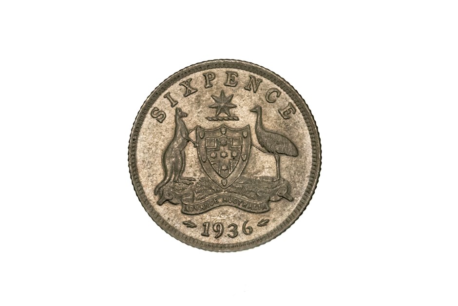 1 x 1936 Sixpence w/ obverse side, George V. Almost uncirculated. Approx. 2.82gm