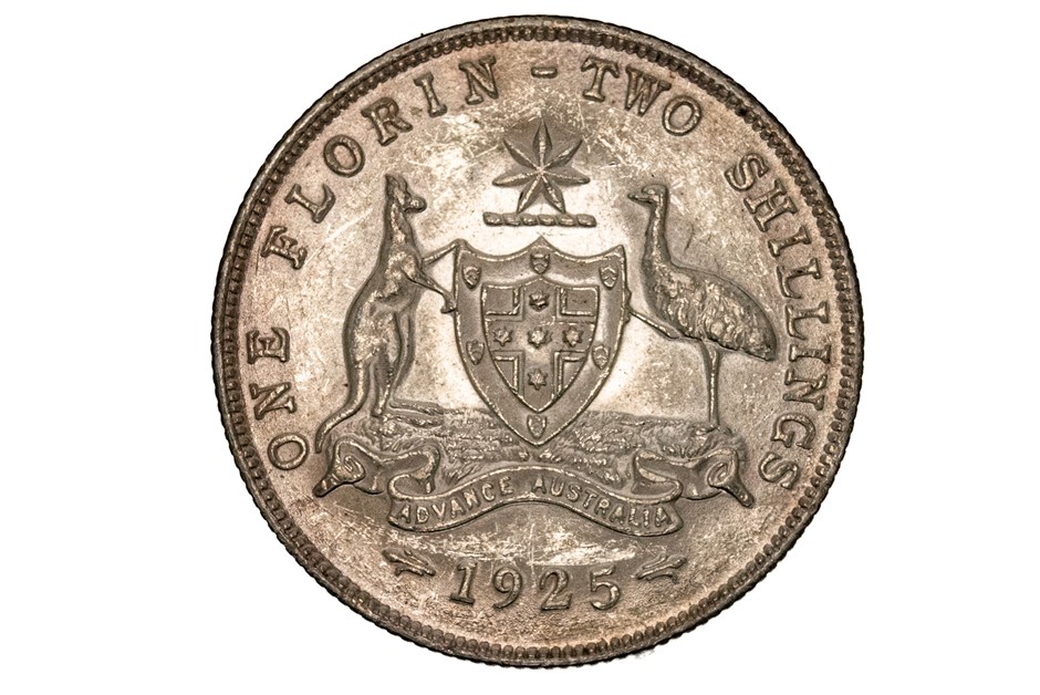 1 x 1925 Florin w/ obverse side, George V. Extra fine. Approx. 11.31gm.