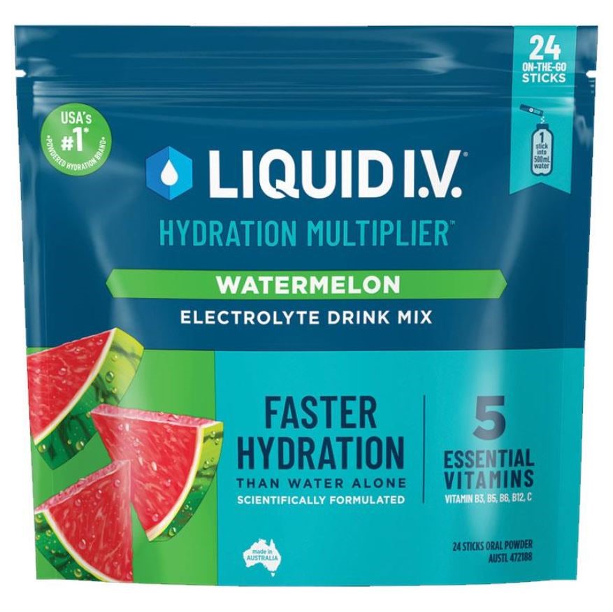 2 x Assorted Pack of 24pc LIQUID IV Hydration Multiplier Electrolyte Drink Mix, Incl: Sugar Free Peach & Watermelon. N.B: Damaged packaging & approx. 10 x pieces missing. (Code: CC117151-D10M) (334696-392)