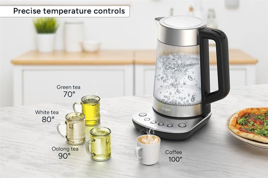 KOGAN Double Wall Glass Smart Kettle, 1.7L, Stainless Steel. NB: Slightly D