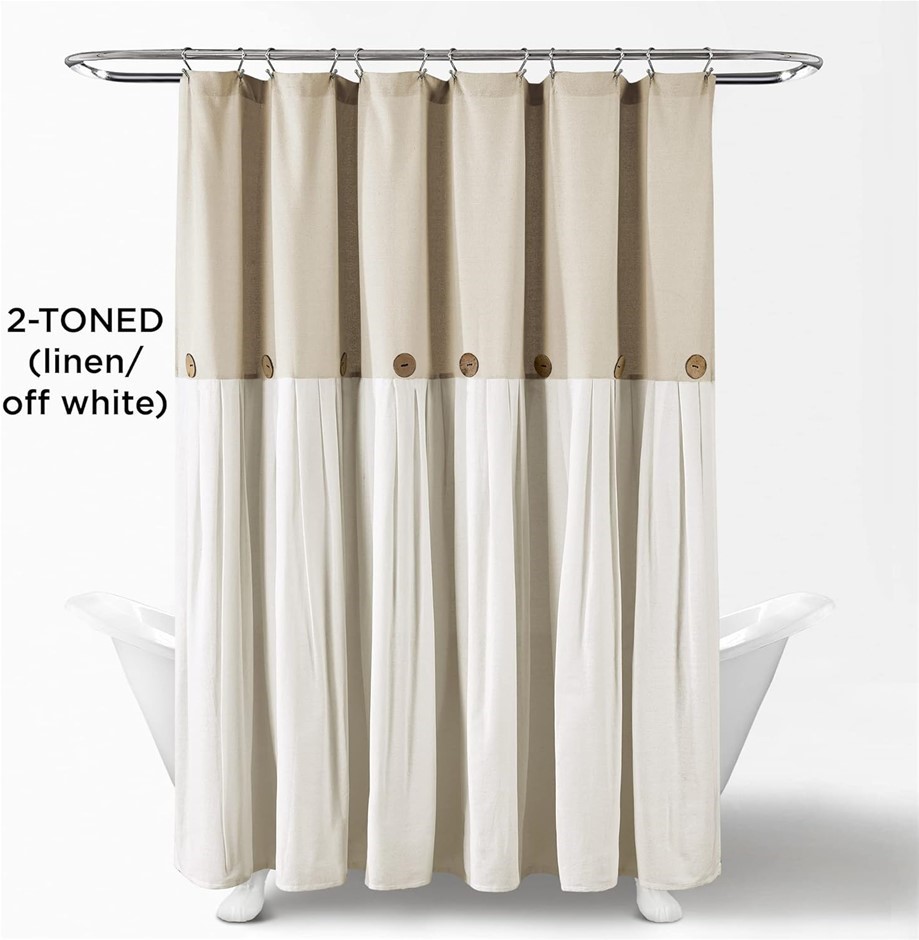 LUSH DECOR Linen Button Shower Curtain, 72`` x 72``. (Code: B07CG7VBVB) (331712-395)