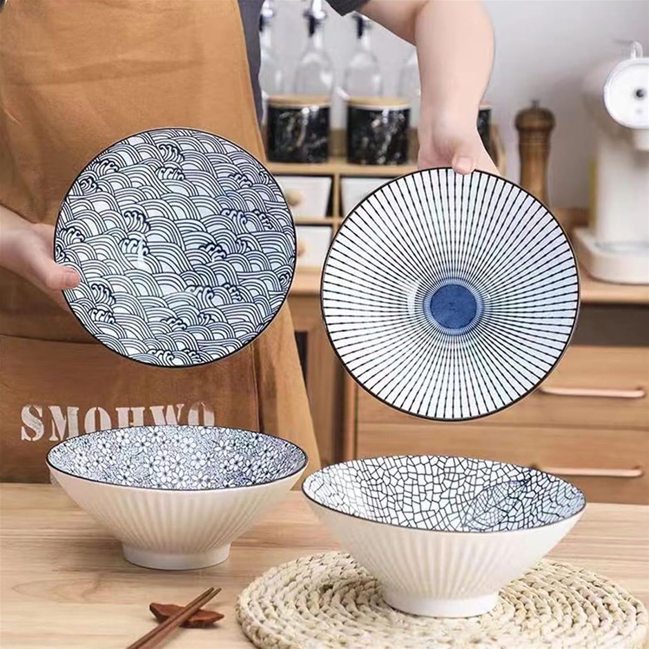 38 Ounce Japanese Ramen Bowls Set of 4 Blue and White Ceramic Cereal Bowls Large Soup Bowls 8 Inch Diameter Elegant Design Ideal for Ramen Soup Cereal and Noodles Dishwasher Microwave Safe Buyers Note - Discount Freight Rates Apply to All Regional Areas(Code: B0DHCTY2MD) (330929-401)