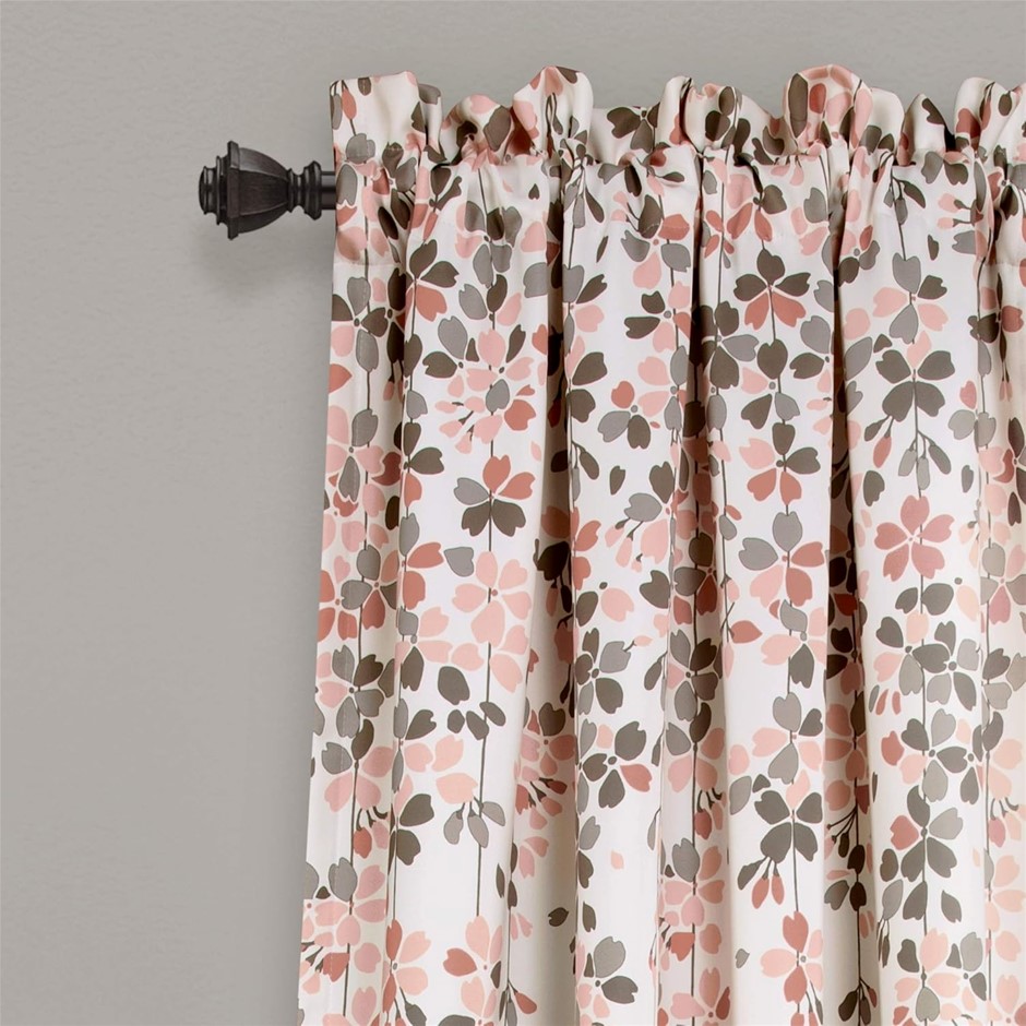 LUSH DECOR Weeping Flowers Darkening Window Curtains Set (2 Panels). Size: 52`` W x 84`` L. Colour: Blush & Gray. RRP: $130. (Code: B07SKCK4QC-NE) (332115-410)
