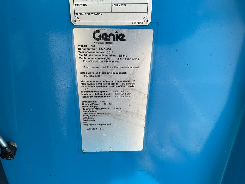 2018 Genie Z34/221C Boom Lift
