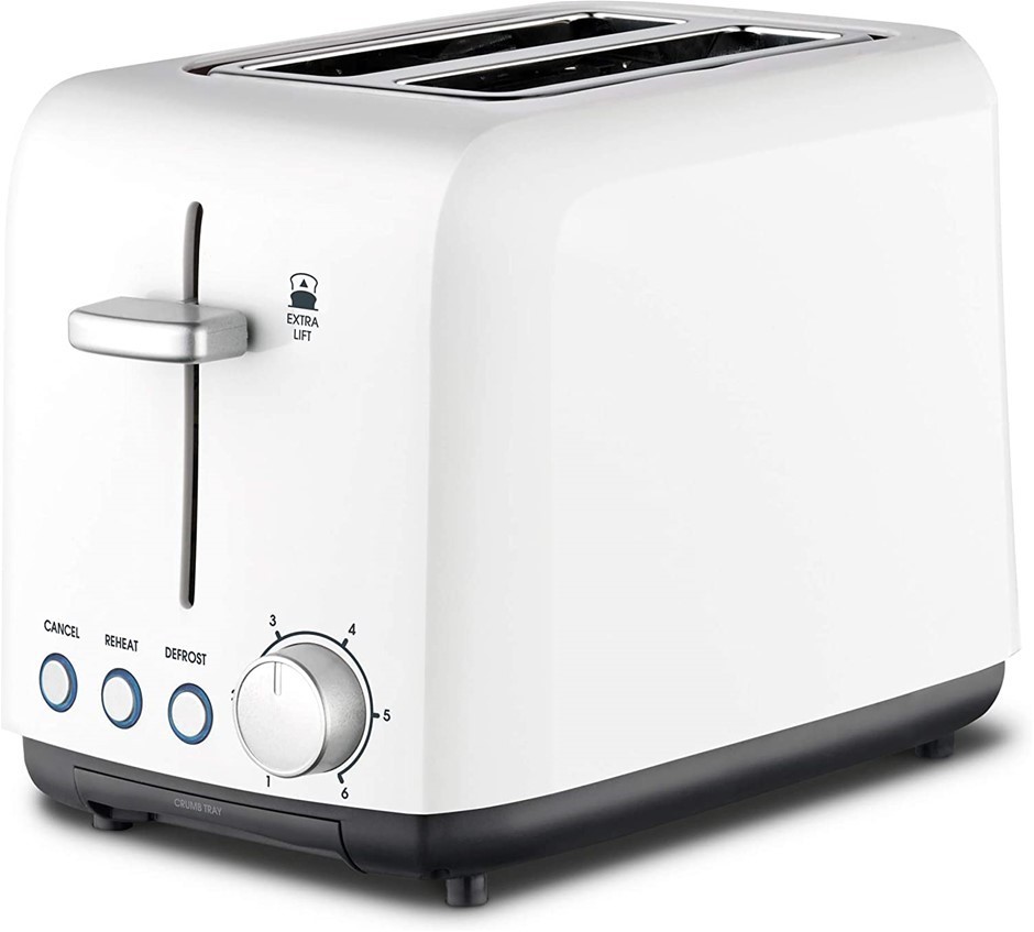 KAMBROOK Wide Slot Toaster, 2- Slice, White, Removable Crumb Tray. NB: Mino