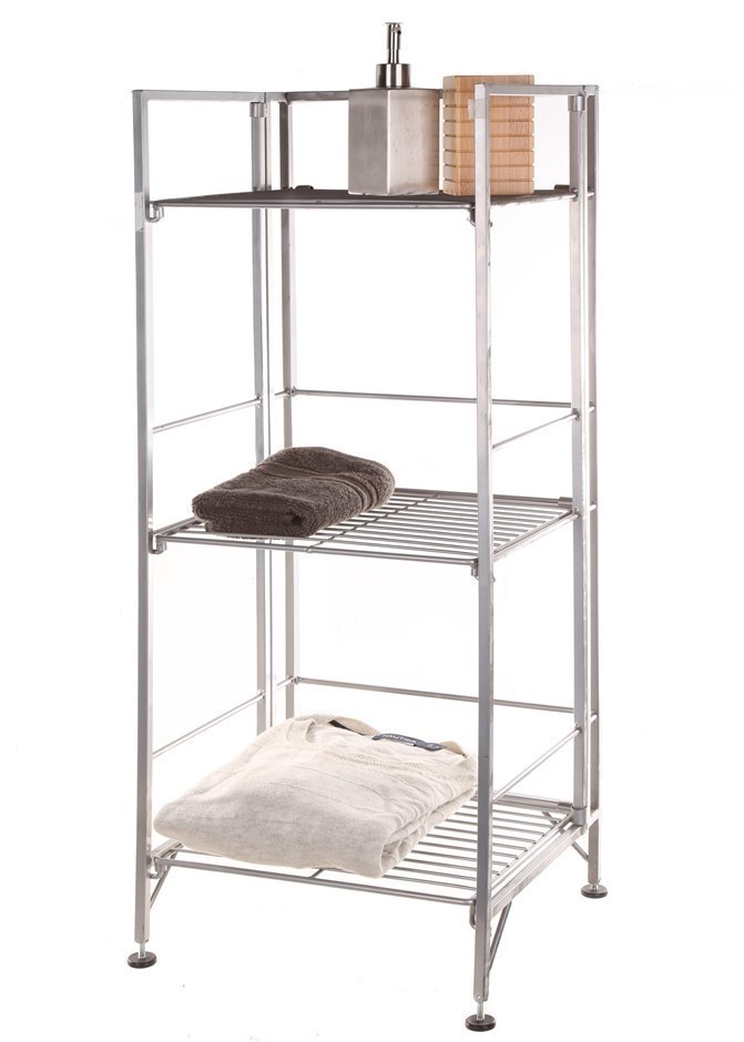 Silver Finish Foldable Rack. 3 Tier. Dimensions: 288mm D x 330mm W x 816mm H. Model#MOFR03CS. Flat Packed. (Code: MOFR03CS) (333534-433)
