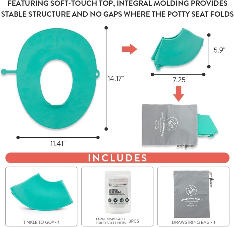 PRINCE LIONHEART Tinkle to Go, Foldable, Reusable Portable Potty Seat with Built-in Splash Guard, Perfect for Travel. (Code: B08W8NG1RL-1) (332388-439)