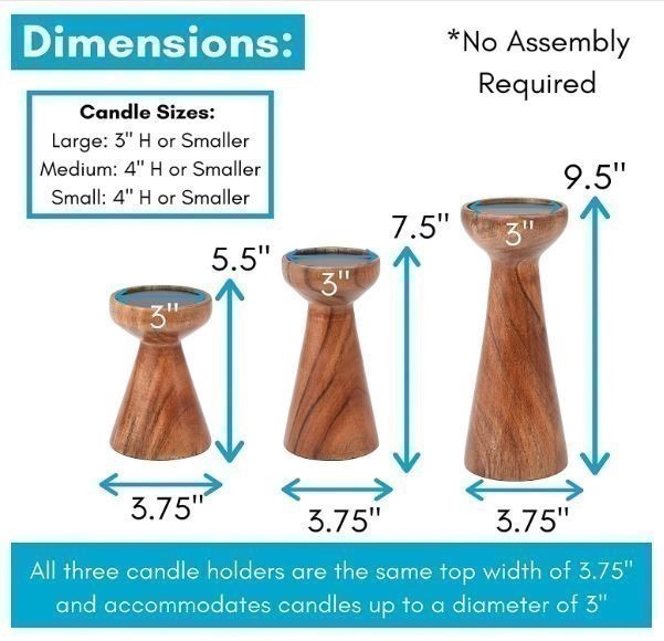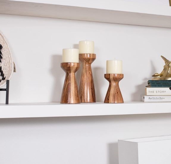 3pc BIRDROCK Solid Wood Flare Candle Holders, Brown. N.B: Candles are not included. (Code: CC101592) (333534-456)