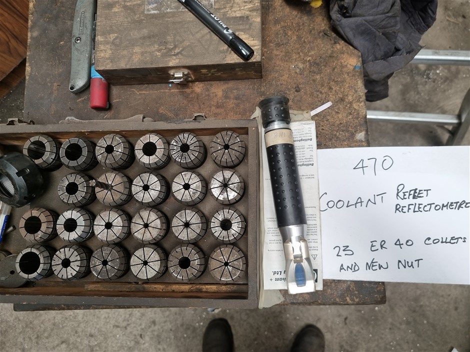 Coolant Reflet Reflectometer And Components, 23 ER 40 Collets And New Nut