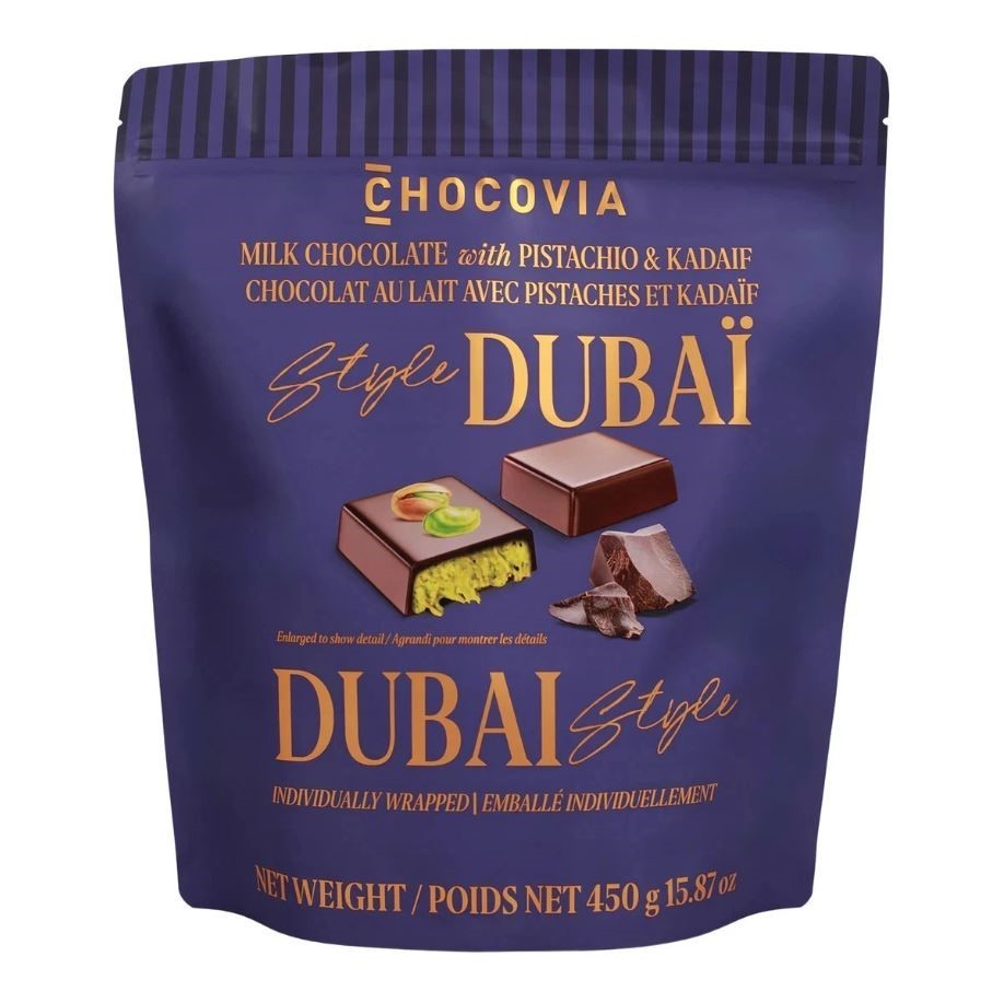 2 x CHOCOVIA Dubai Style Milk Chocolate w/ Pistachio & Kadaif, 450g. N.B: Damaged packaging & approx. 20 x pieces missing. (Code: 1906855-K2-D20M) (333173-475)