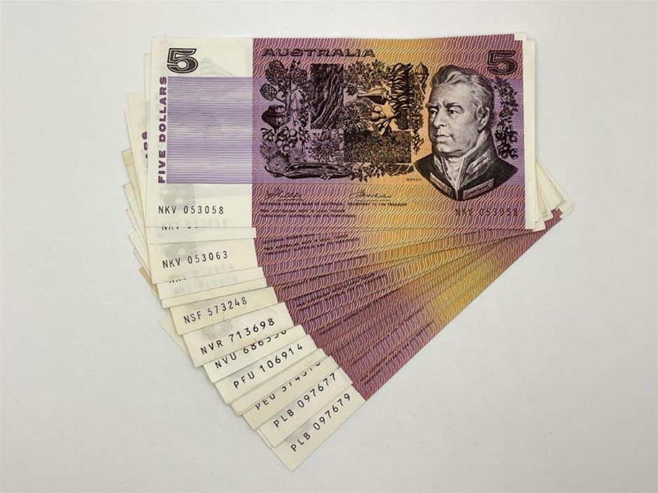 Approx. 18 x asstd Australian $5 paper banknotes