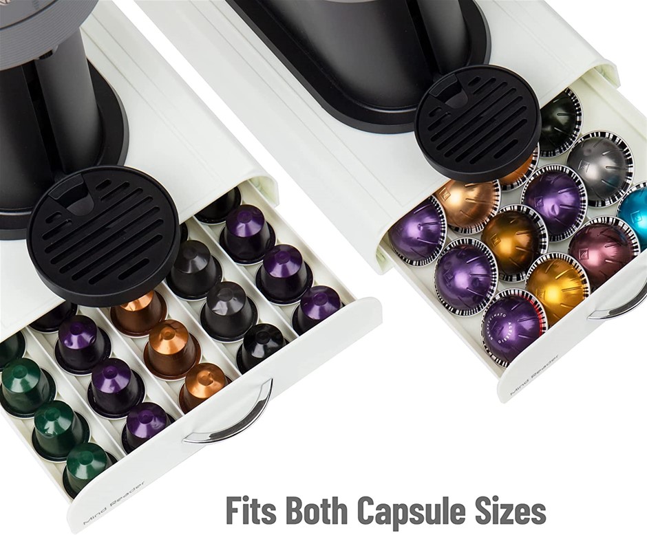 MIND READER 50 Nespresso capsules or 24 Vertuoline capsules Coffee Pod Storage Drawer Organizer, White Plastic. NB: Damaged box (Code: B013HXX69I-D) (332115-493)