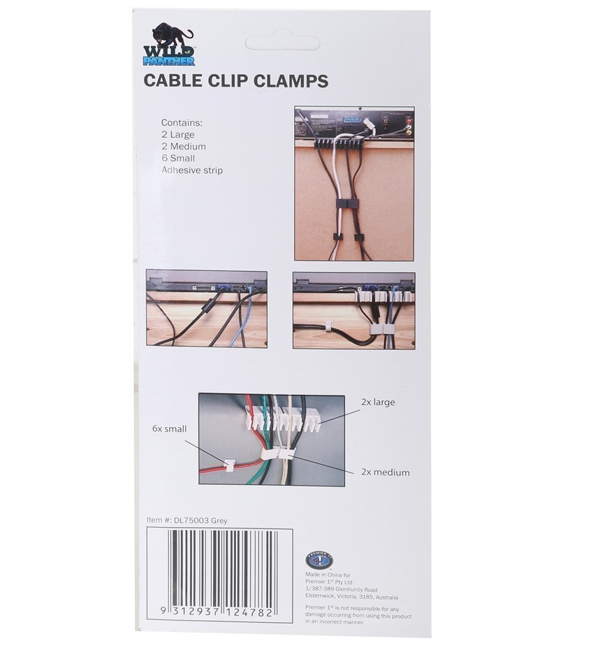 12 x Set of 10 Cable Clip Clamps c/w Adhesive Strip, Grey. (Code: 75003-K12) (333534-497)
