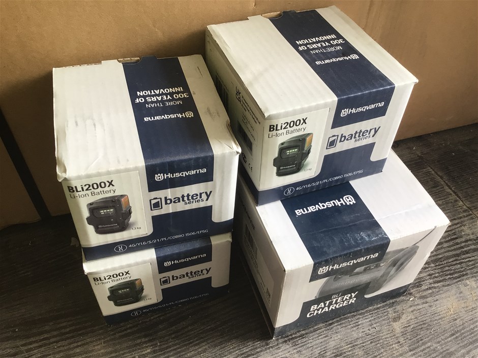 Unused Husqvarna BLi QC250 Charger and 3 x BLi200X Batteries
